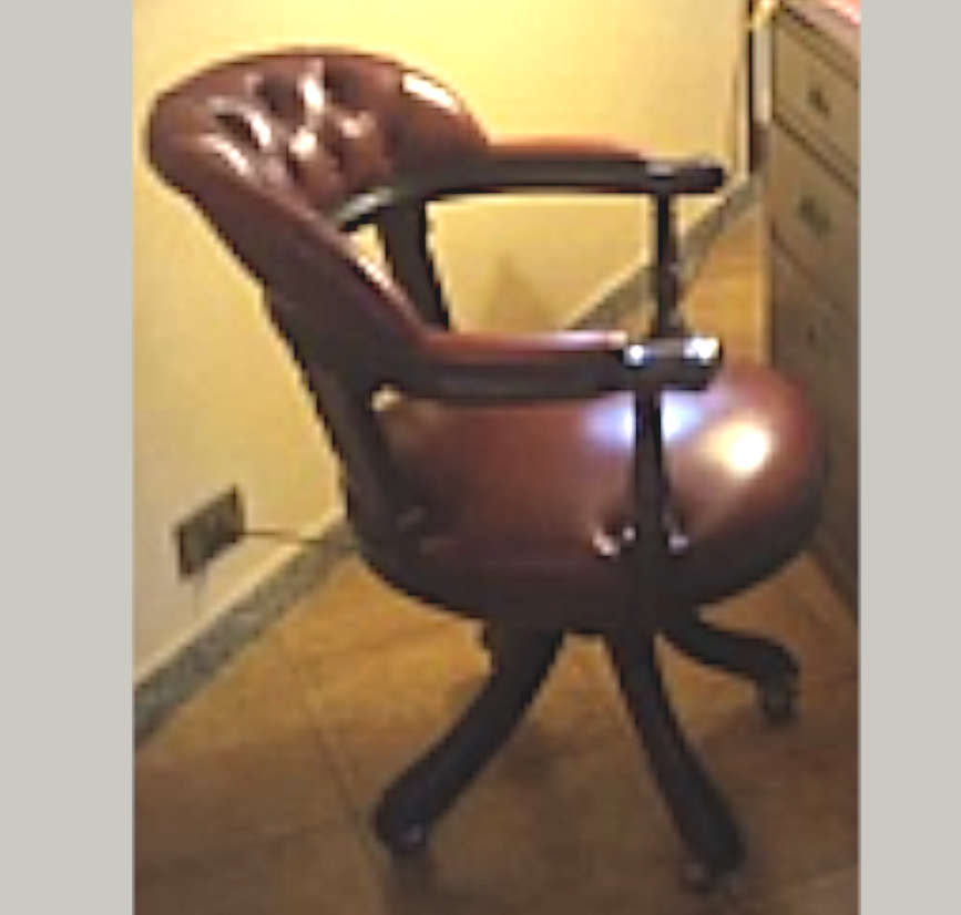 scrivania e sedia girevole imbottita, stile vecchia marina. Montate. Peso totale circa 100kg. h 80 per entrambi i pezzi. Scrivania: 175x170 imballata. Sedia: 65x65 imballata. Ritiro mezzo piano sotto il livello strada - 7 scalini -, consegna al piano, in centro storico a Perugia - possibili limitazioni di orario.